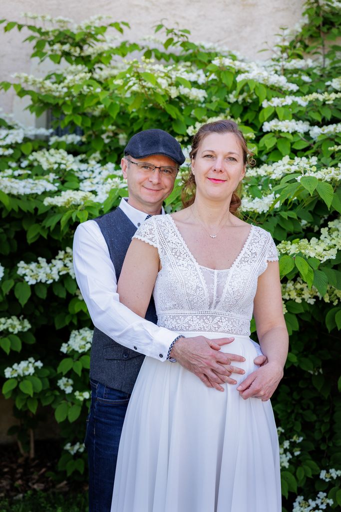 Quelques semaines plus tard, nous avons retrouvé le soleil du printemps pour une séance couple au bord de la Loire. Une atmosphère joyeuse et décontractée, à leur image, où chaque regard et chaque éclat de rire racontaient leur complicité.